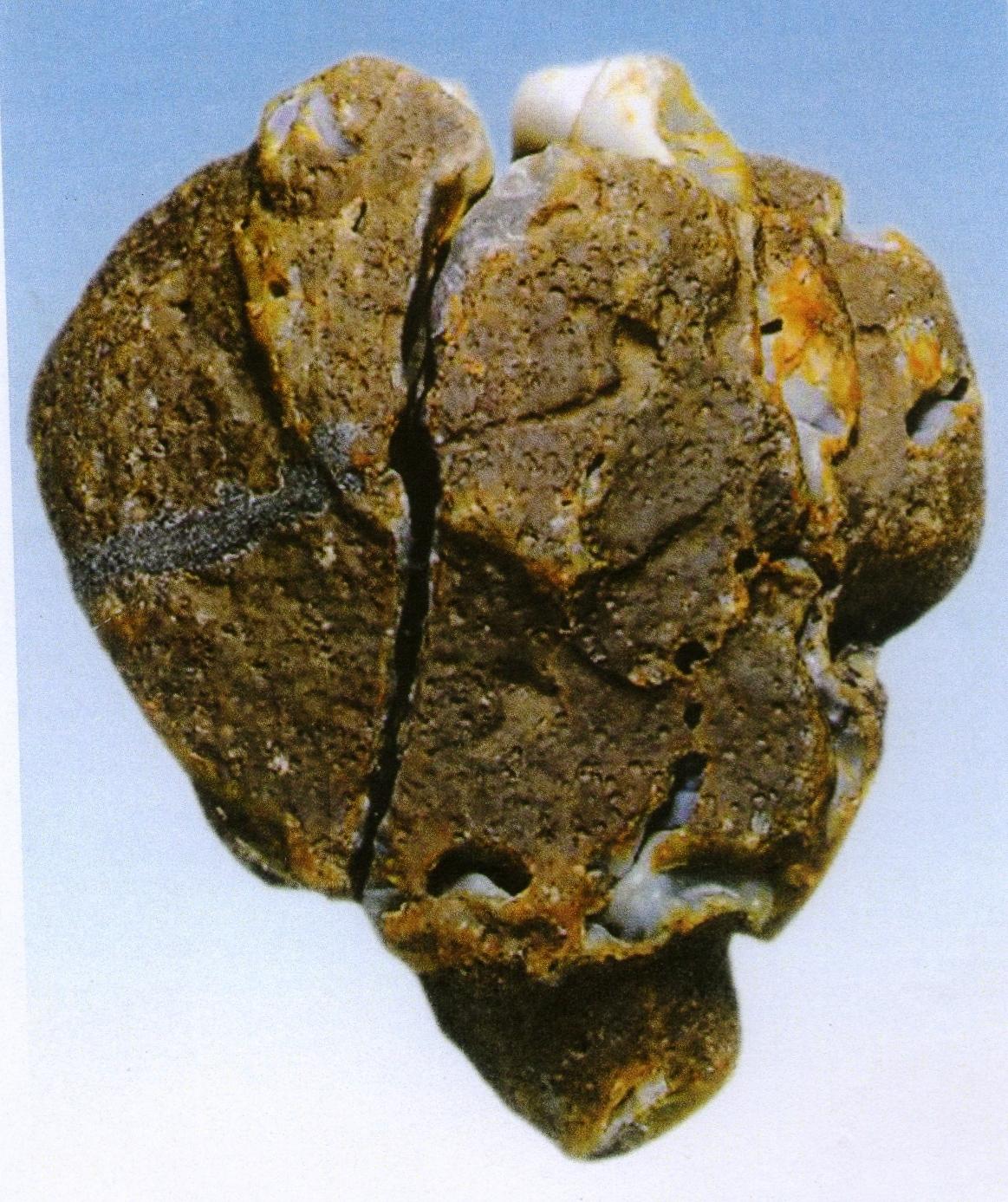 En 1966, Laires Luciano Lucas supervisait dans sa mine, située à une quinzaine de km de la ville d’Artigas en Uruguay, une exportation d’agates. L’une d’elles fut écartée de ce départ pour l’étranger, car elle était creuse. Il s’agit d’une géode qui présente un orifice dans l’une des parois, raison pour laquelle elle est rejetée du camion. La pierre se divise en deux et reste sur place. Quelque temps plus tard, Lucas la trouve et constate, en rassemblant les 2 morceaux de la géode, que celle-ci a la forme d’un cœur et qu’à l’intérieur il y a des inscriptions et des symboles. "Nous nous trouvons devant quelque chose de supérieur à l’homme" affirme Lucas, et depuis ce moment, la famille Lucas s’occupe de la géode avec dévouement et admiration, et sans but lucratif. Elle est en agate, avec des cristaux de quartz. Son poids approximatif est de 8 kg. |